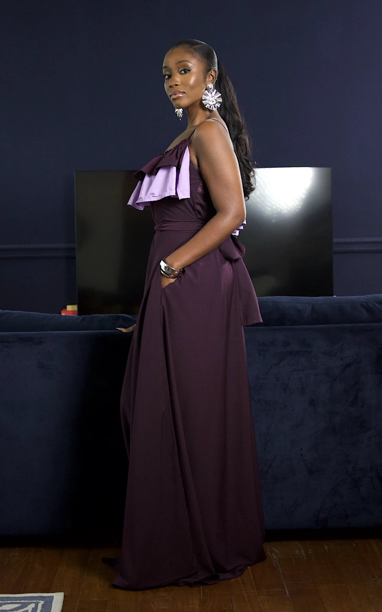 MAXI DRESS WITH SPAGHETTI STRAPS AND FRILLS WITH A A-LINE BOTTOM